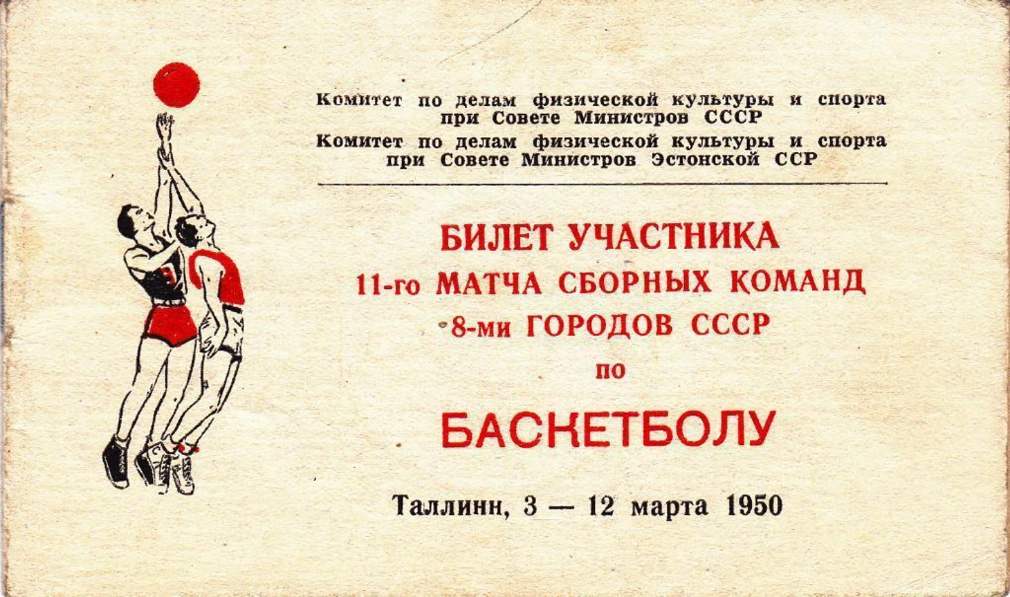 3-12 марта 1950. Таллинн. Билет участника Матча 8 городов.
