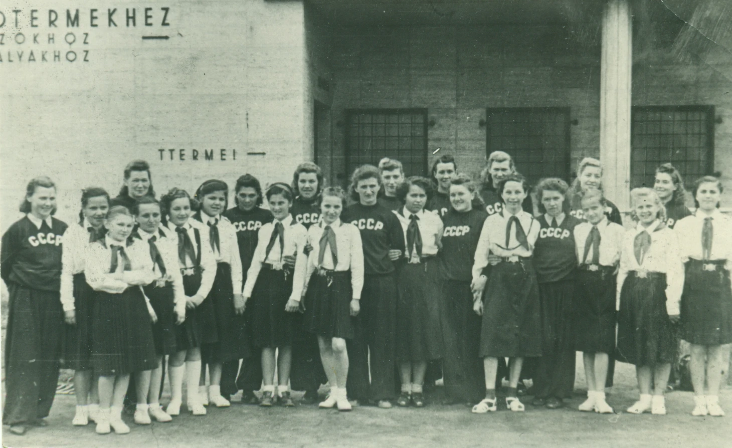 Май 1950. Будапешт, Венгрия. Венгерские пионеры пришли поздравить советских спортсменок с победой