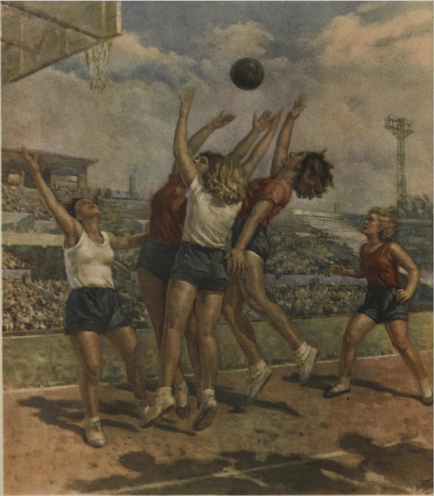 1950. «Бросок по кольцу». Художник Сергей Луппов