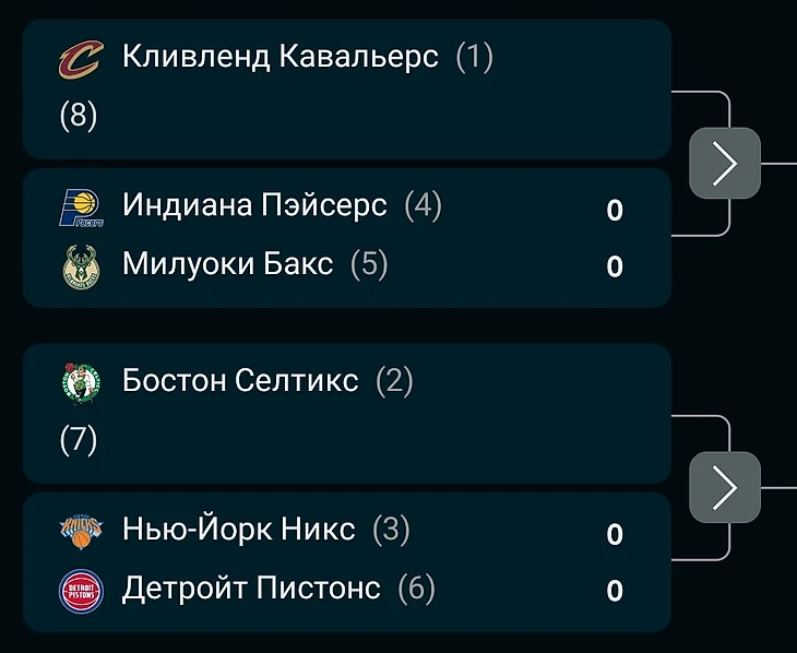 Никс в одной диве с Селтикс, а другие 3 команды с Кливлендом, то есть никто из этих 4 команд не выиграл дивизион