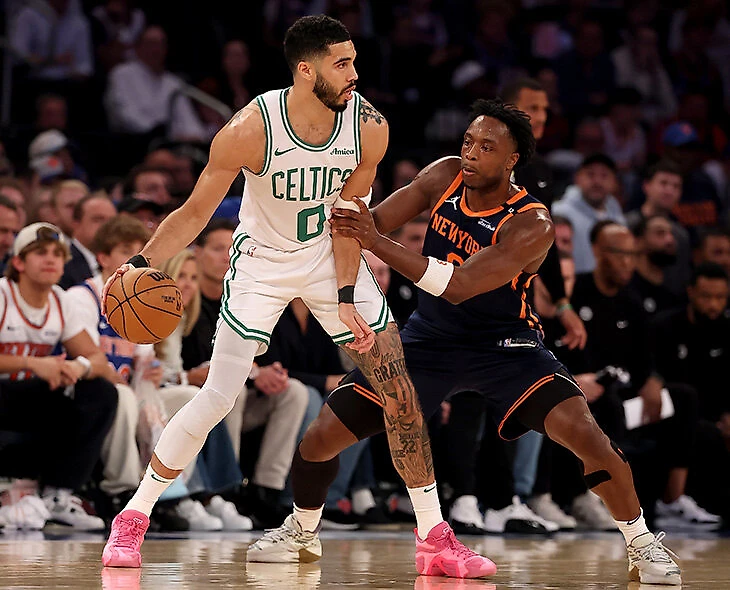 С позиции болельщиков «Бостона» это кажется несправедливостью. Тейтум не только является первой опцией побеждающей команды, но также выполняет очень широкую роль на площадке благодаря своей универсальности. Он великолепно подбирает, плотно защищается и даже скопил неплохую коллекцию классных выступлений в решающие моменты матчей. Но уже на старте серии против «Никс» Тейтум провалился. И вместо того, чтобы вести в серии 3-0, «Селтикс» угодили в яму и были вынуждены сжимать булки при переезде серии в Нью-Йорк.