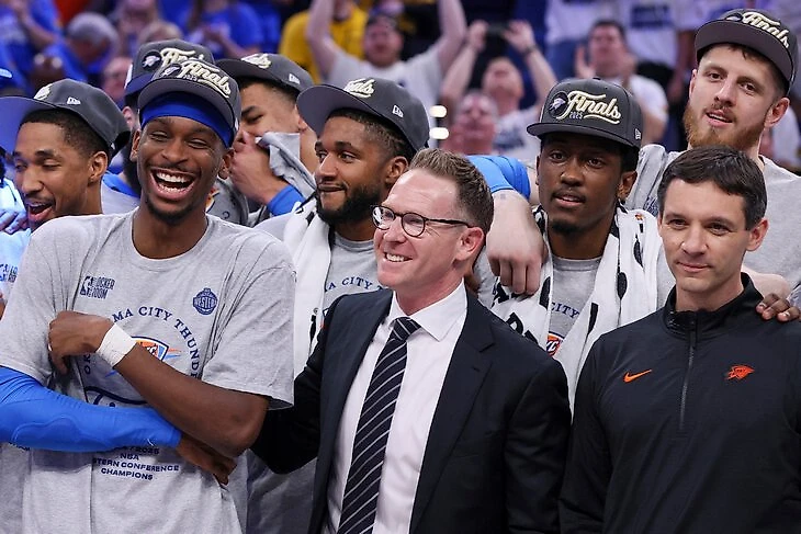 Если Фила Джексона называют «Дзен-мастером», то Сэма Прести впору именовать Карлсоном – так он уважает мантру «спокойствие, только спокойствие». Никаких скоропалительных выводов, минимум резких телодвижений – но если уж Прести делает на кого-то ставку, то доверяет этому человеку по-максимуму. Так было и в августе 2021-го, когда «Оклахома» внезапно для многих выдала максимальный контракт (172 млн за пять лет) Шэю Гилджес-Александру. «Тандер» тогда пока только-только вставали на ноги, но Прести уже разглядел в 23-летнем игроке будущую звезду. И не прогадал – еще до истечения этого соглашения парень трижды попал в сборную сезона и стал MVP регулярки. В сезоне-2024/25 лучший игрок лиги обошелся «Оклахоме» всего в $35,8 млн – а это столько же, как «Денвер» платит Майлу Портеру или «Новый Орлеан» тратит на Зайона Уильямсона.