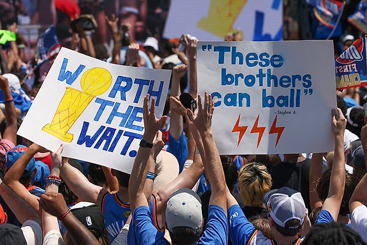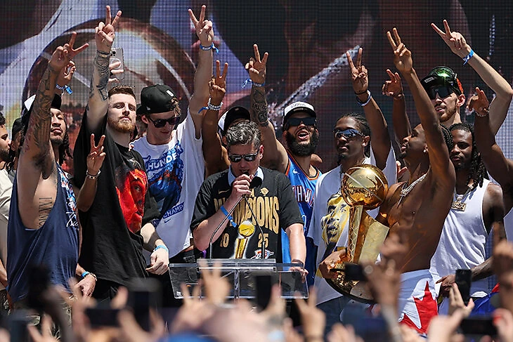 «Оклахома» обошлась без традиционного празднования чемпионов – пьяного вояжа в Лас-Вегас, так что сразу отправилась на чемпионский парад.