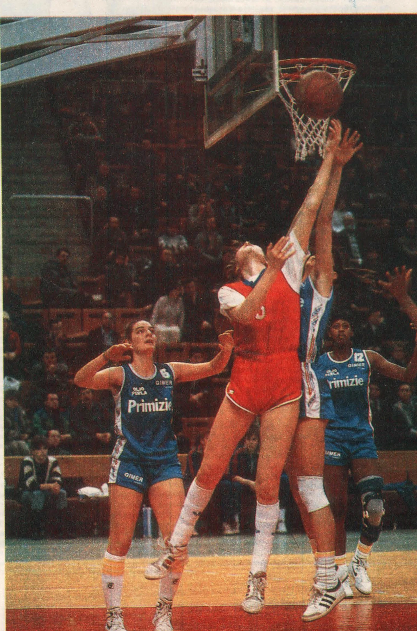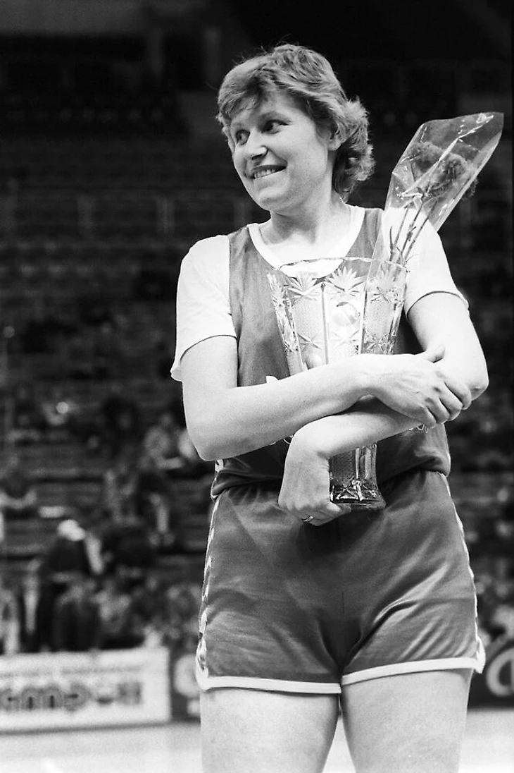 25 января 1989. Москва. Матч группового этапа XVIII розыгрыша Кубка Лилиан Ронкетти. ЦСКА — «Парма» (Италия) — 88:77. Олеся Барель завершает атаку из под кольца