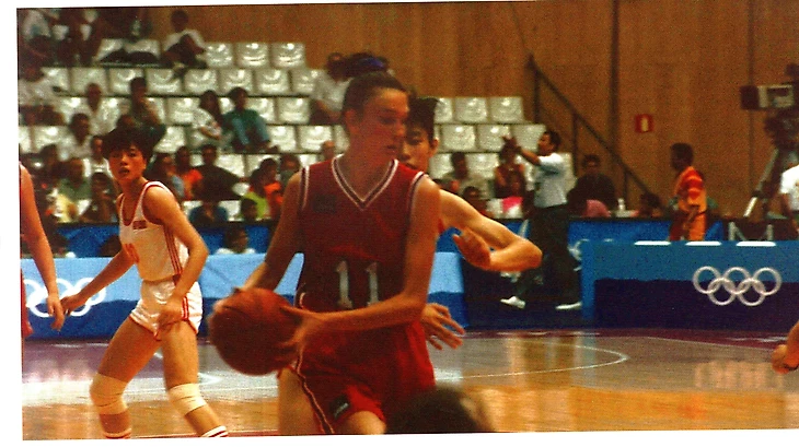 7 августа 1992. Бадалона, Испания. Финал Олимпиады-92. Сборная СНГ — Китай — 76:66. С мячом Елена Худашова