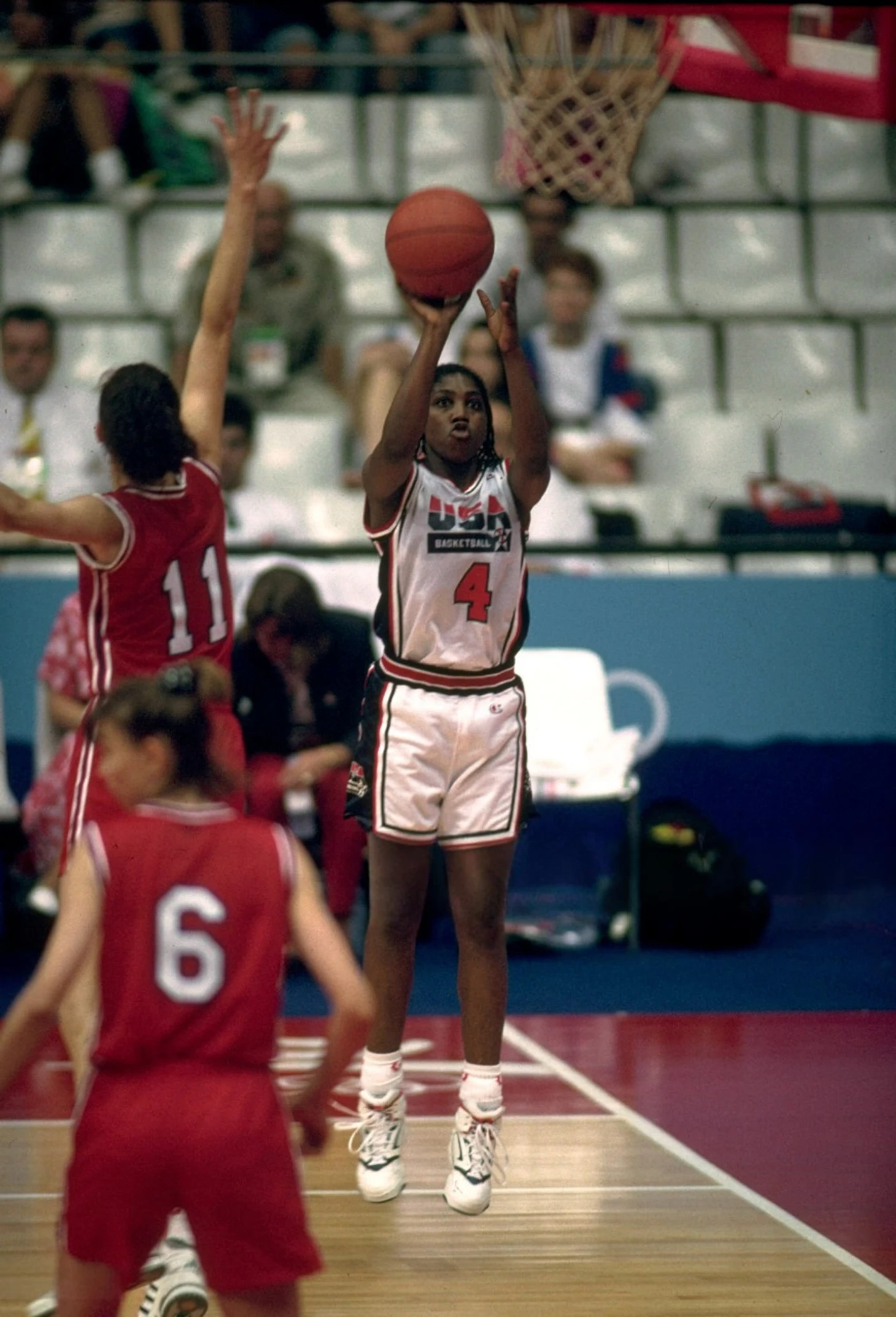 5 августа 1992. Барселона. В полуфинальном матче против США Наталья Засульская (№ 14) набрала 20 очков и стала самым результативным игроком встречи