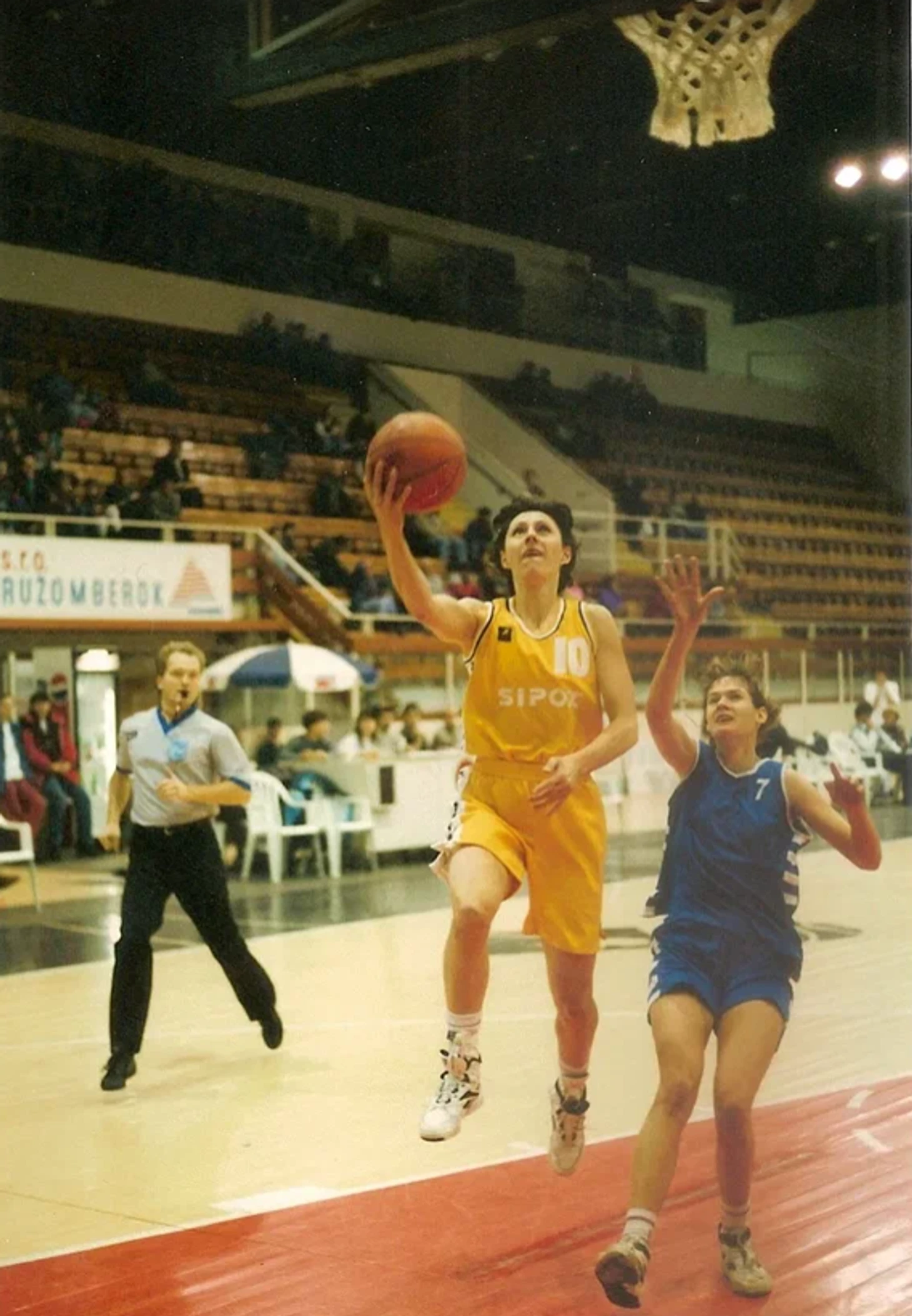 Завоевав две золотые медали чемпионатов СССР и СНГ, один из лидеров киевского «Динамо» Елена Жирко (с мячом) уехала играть за рубеж