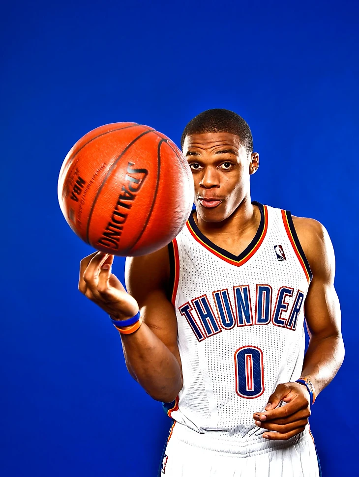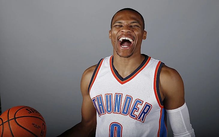 Последний медиадень Уэстбрука в майке «Оклахомы». И какая-то загадочная поза: