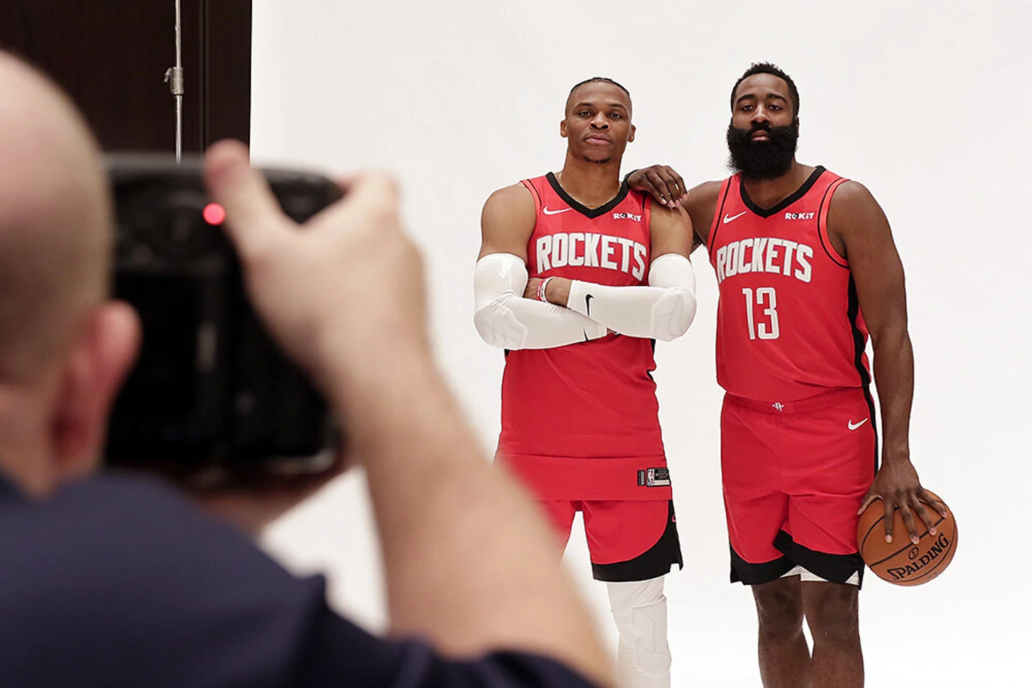 Воссоединение с Харденом в «Хьюстоне». Улыбки скрыты, все теперь максимально серьезно.