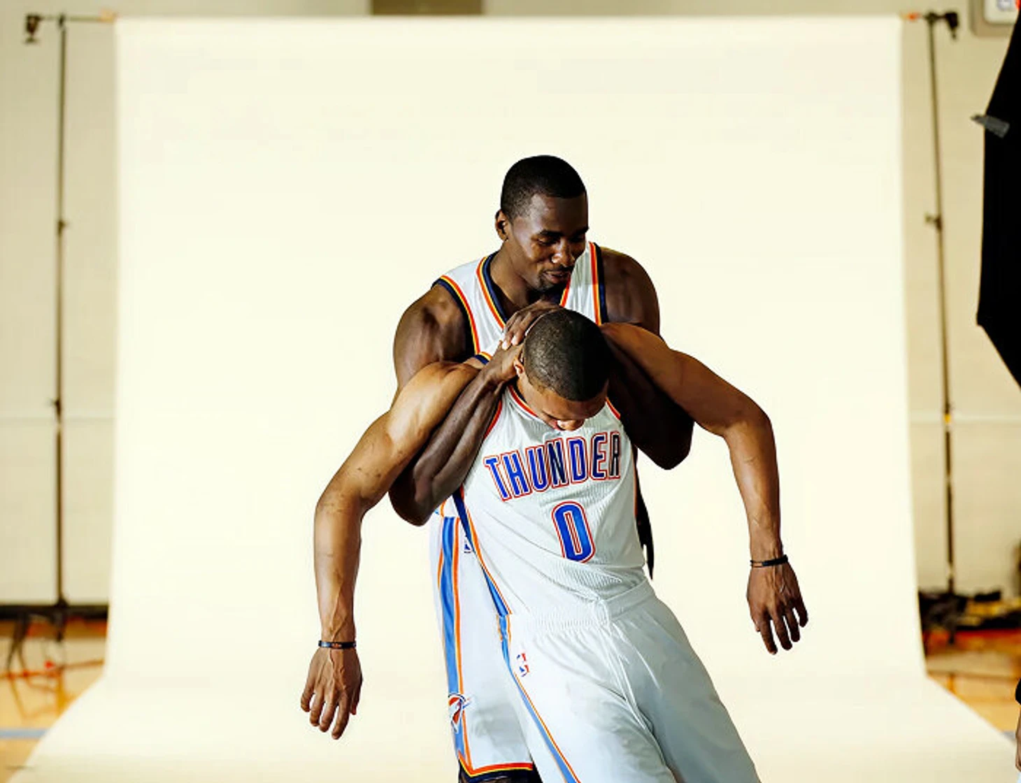 Уэстбрук и Ибака дурачатся на медиадне, а вскоре будут вынуждены тащить «Оклахому» без Дюрэнта, который пропустит больше половины сезона из-за трещины в ноге.