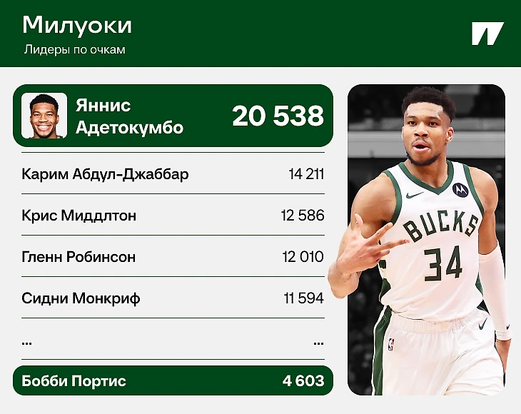 В некоторых командах текущий лидер – даже не лучший среди всех игроков НБА в 2024/25. Самый яркий пример – лишь 47-й в истории «Вашингтона» Кори Кисперт, у которого почти в 5 очков меньше, чем у Брэдли Била. При этом Бил все еще в НБА, но в другой команде. Стоит ему под занавес карьеры на бис вернуться в «Уизардс», он сместит Элвина Хэйса.