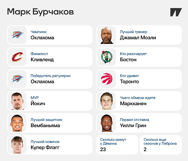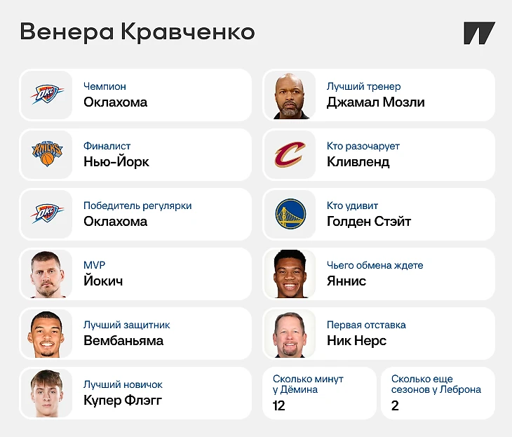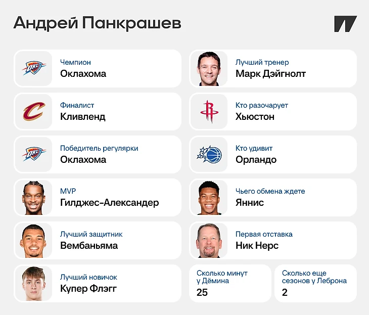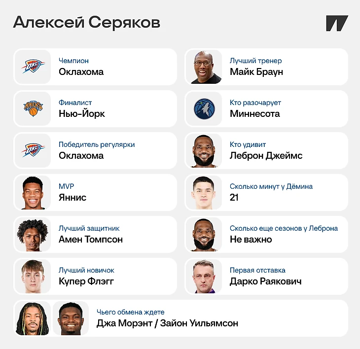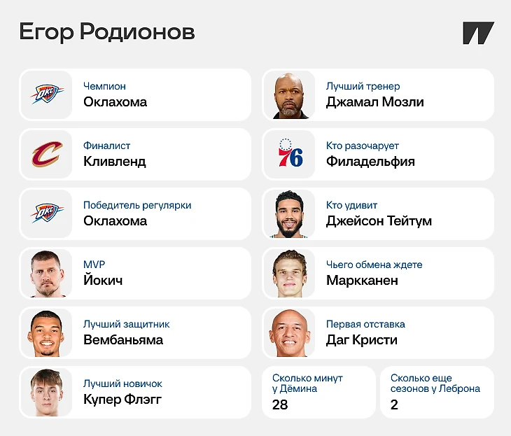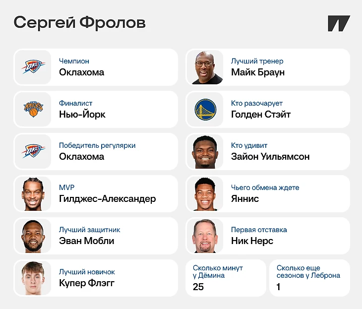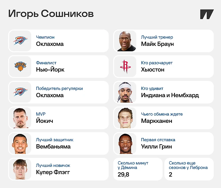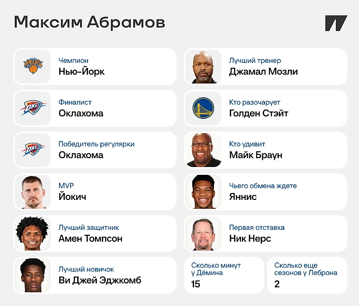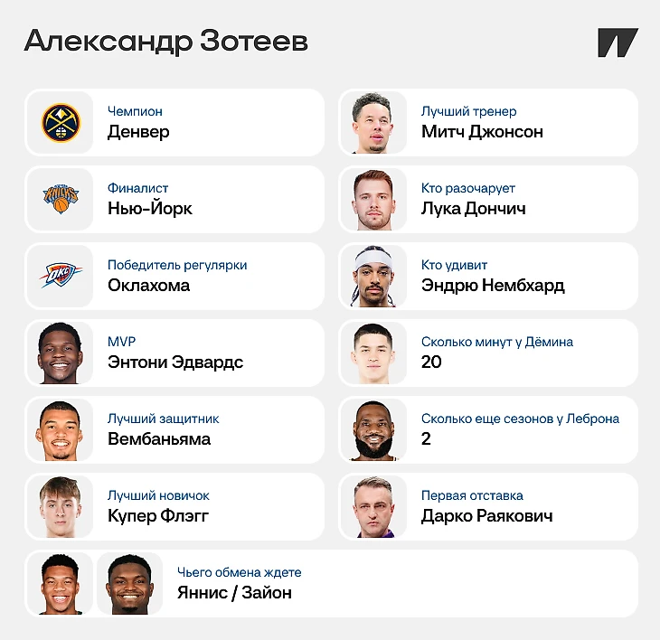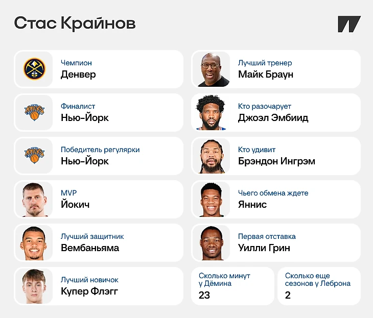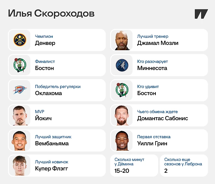 Йокич – MVP, в финале – «Никс» и «Оклахома», 25 минут у Дёмина. Прогнозы на сезон-25/26