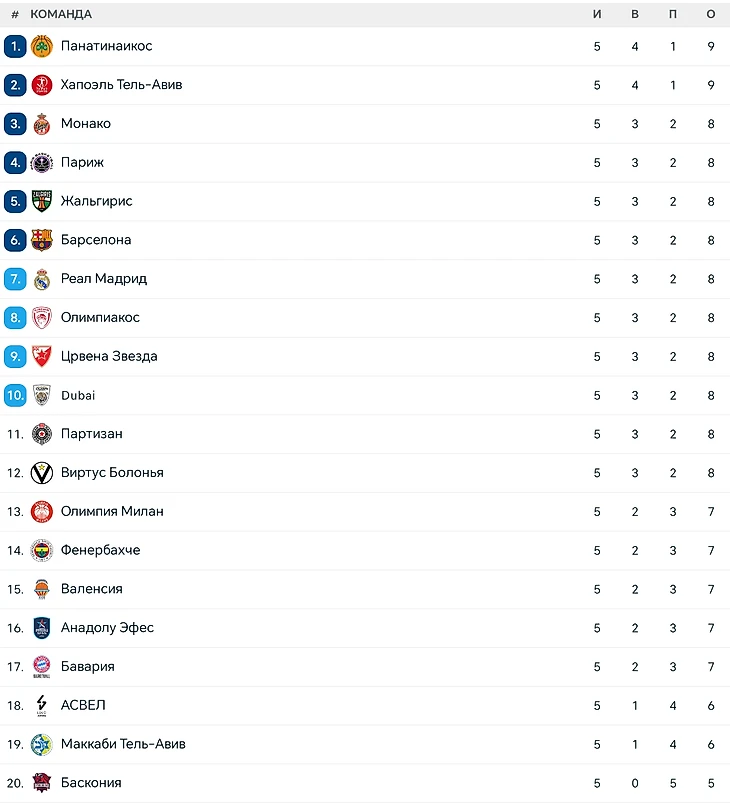 «Хапоэль» - неожиданное начало от новичка турнира, статистика такая же, как и у «Панатинаикоса»: 4 победы и 1 поражение. Можно сказать, что соперники были не самые сильные («Барселона», «Анадолу Эфес», «Маккаби», «Валенсия», «Париж»). Каталонцы пока что не в лучшей форме, «Анадолу Эфес» приучил нас, что свой максимум показывают со второй половины сезона, «Валенсия» - дебютант чемпионата, «Париж» потерял многих лидеров с прошлого сезона. Поражение случилось в тель-авивском дерби против «Маккаби», вроде бы после побед над более именитыми соперниками все считали «Хапоэль» фаворитом, но «Маккаби» оказались сильнее. Команда построенная Итудисом, готова к Евролиге, это полная его заслуга, плюс приход Мицича даёт команде уверенность. Интересно на сколько их хватит играть в таком темпе.