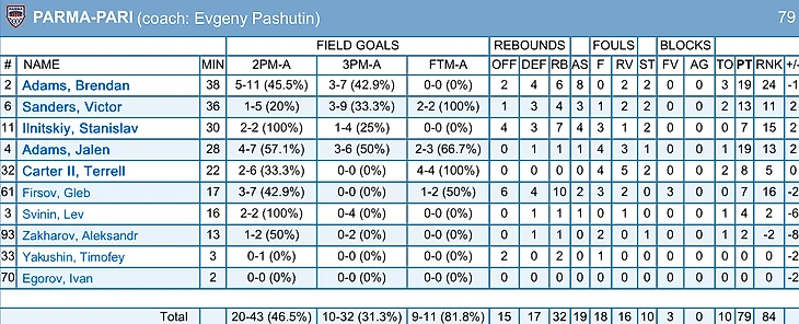 За 15 секунд до конца пермяки минимально проигрывали. К сожалению, Сэндерс не успел ввести мяч из-за боковой, и владение перешло хозяевам. Гостям пришлось фолить. Воронцевич дважды был точен с линии. И в последнем владении в матче Сэндерс мог сравнять, но промахнулся с периметра из-за дуги. Подбор Ильницкого подарил надежду. Он сделал передачу на Бр. Адамса, который на показе убрал двоих защитников и бросил 3-очковый. Но как я уже писал выше, домашние кольца питербуржцев были против пермяков. Мяч поскакал по дужке кольца и не провалился внутрь.