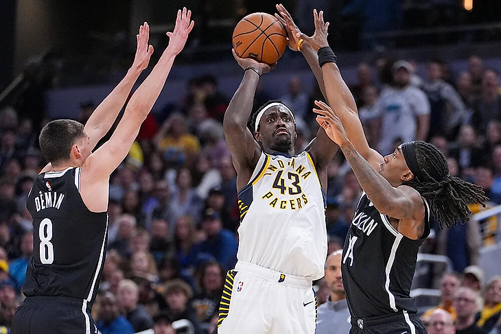 «Нетс» начали четверть с разгромного рывка 21:8, в то время как «Пэйсерс» реализовали лишь 4 из 16 своих бросков в начале отрезка.
