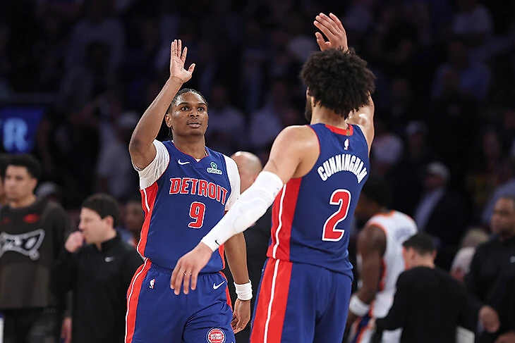 У «Детройта» есть три молодых игрока если не с уникальными, то редкими навыками. Двухметровый разыгрывающий, способный защищаться на трёх позициях. Один из лучших оборонительных специалистов в НБА. Элитный рим-раннер с хорошей защитой и 81% реализации штрафных. На троих им 67 лет. Явно получают удовольствие друг от друга.