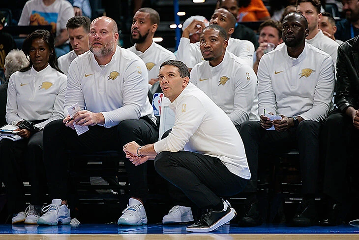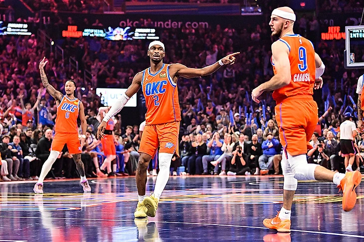 В прошлом году «Тандер» Шэя впервые воспринимались как претендент на титул и сразу же взяли трофей. Молодая, прибавляющая команда с лидером, который внезапно стал полноценной суперзвездой, приличной глубиной и четкой игровой идентичностью не без проблем, но стала-таки чемпионом. И теперь они мощно стартуют в свой пост-чемпионский год, раскатывая лигу с невиданным доселе нет-рейтингом, так что их лидеру даже не приходится выходить на паркет в 4-х четвертях.