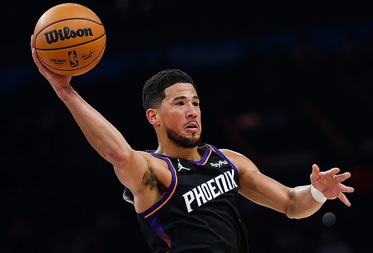 Три человека с хорошим броском дают Букеру пространство. Если он не увлекается стучанием мяча и быстро решает эпизоды, подстраховка появляется редко. Отходить от Грэйсона Аллена (44,7% 3Р), Ройса О’Нила (43,3%) или Коллина Гиллеспи (41,3%) себе дороже.