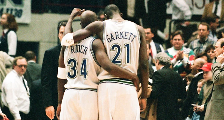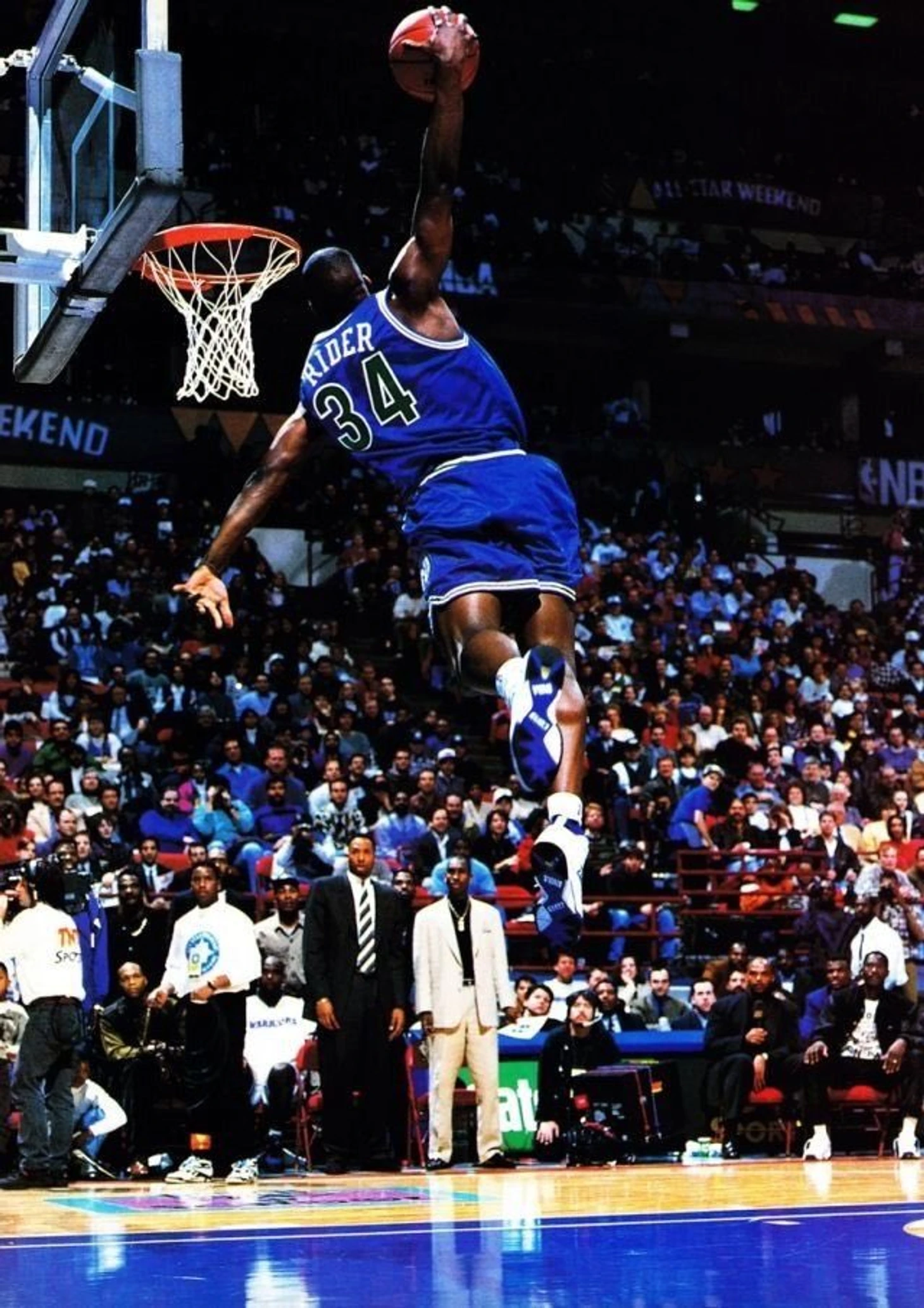Нынешней аудитории, избалованной креативами всяких маков макклангов, и сам данк покажется безыскусным – с проносом под ногой и разворотом. Впрочем, выглядит это и сейчас крайне эффектно (прыгал Райдер ДЕЙСТВИТЕЛЬНО высоко), а тогда и вовсе было отвалом всего организма. Правда, пиковым моментом Айзейи в форме «Тимбервулвз» была не победа на СДК, а один из самых невероятных трехочковых в истории баскетбола. Произошло это в игре против «Сакраменто» и, разумеется, никаким трехочковым не было – Райдер яростно пытался спасти мяч из аута после собственной же ошибки и слегка перестарался, угодив точнехонько в кольцо. Все, кто был на площадке, особенно игроки «Кингз», выпали в осадок, а комментаторы возбужденно залопотали про «момент десятилетия» («Play of decade»); по этим словам видео преспокойно гуглится и сейчас, рекомендую найти и насладиться.