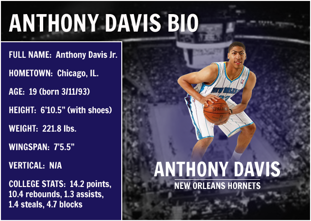 Один раз в 10 лет, в НБА приходит парень, который способен изменить эту лигу и который прекрасно подходит для этой лиги.Энтони Дэвис подходит под эти описания. И если он сможет развить свой талант, Нью-Орлеан Хорнетс окажутся там, где даже и не мечтали оказаться, благодаря, в немалой степени новичку из Кентукки.