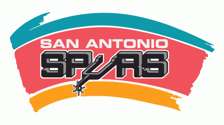Это и не удивительно - Матч проходил в Сан-Антонио, а у логотип Сперз в те времена был красочный, с тонкой полоской бирюзовато-голубого: