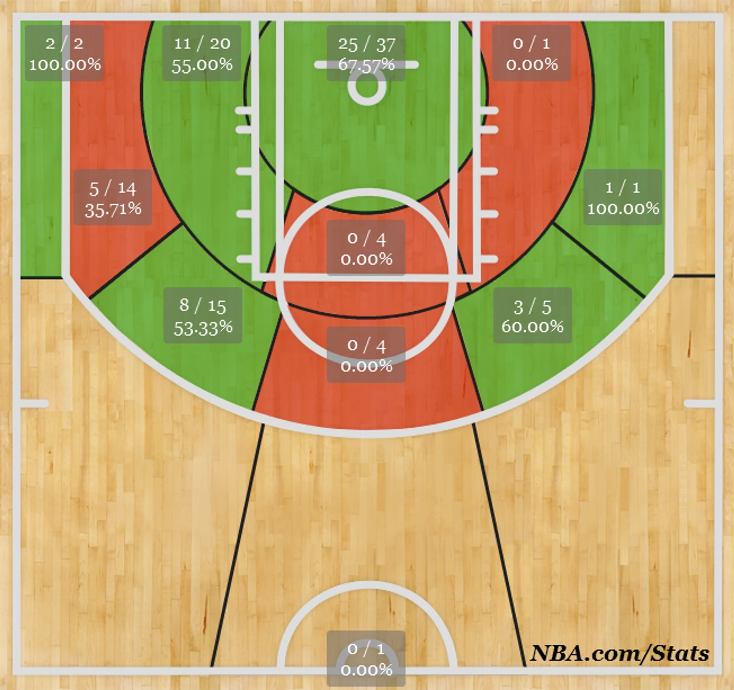 ЛаМаркус Олдридж опять сделал свое черное дело, и на этот раз даже сочетание Ашика-Ховарда в старте «Рокетс» не особенно помогло – 29 (12 из 23) + 10. В первых четырех матчах он набрал в общей сложности 141 очко и 46 подборов и стал первым, кому удалось перевалить через отметку в 140 + 45 в первых четырех матчах с 97-го года, когда то же самое сделал Хаким Оладжувон.