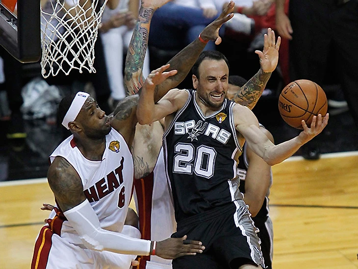 Но в середине третьей четверти Джефф Ван Ганди произнес уже нечто парадоксальное и напоминающее диагноз: «Быть может, «Хит» просто не могут?» Нападение «Сан-Антонио» по интенсивности, уровню взаимодействия, по взаимозаменяемости и количеству опций представляет собой нечто доселе небывалое. Даже сравнения с «Сакраменто» начала века кажутся натянутыми, потому что такой глубины и такого таланта, и такого сочетания интеллекта и атлетизма не было даже там. В первых двух матчах «Хит» делали невозможное и накрывали эту бьющую фонтаном энергию – за счет ЛеБрона на Паркере, за счет агрессивных ловушек на периметре и подстраховке против центровых, за счет нивелирования уязвимых мест. Но в Майами плотину все же прорвало. В 4-м матче «Сперс» вновь прошлись атакующим катком, не столь исторически мощным, как в 3-м, но вполне себе впечатляющим. К счастью для «Майами», все соперники не отходили от привычного образа. К несчастью для «Майами», даже так с ними ничего поделать было нельзя. Тони Паркер взвалил на себя атаку тогда, когда «Хит» пытались прихватить соперника для ответного рывка: француз смело шел под щит, зарабатывал фолы и забивал сложные мячи в падениях или набросом (8 из 15, 19 очков). Дэнни Грин взбодрил соперника в начале тремя трехочковыми. Кавай Ленард не стал мучить хозяев дальними попаданиями, зато просто задавил их струей молодости и аномальной агрессии – гениальный путбэк и не сложившийся данк через Андерсена должны были добить «Хит» (20 очков, 7 из 12, 14 подборов). Миллс вновь свирепствовал, уместив в 16 минут 14 очков (5 из 8) и 2 передачи, но при этом не сделал ничего феноменального. Джинобили и вовсе стал символом команды: 4 потери, 2 передачи, 7 очков (2 из 4) – и плюс-минус «+27». (Данкан побил сразу два рекорда: по количеству минут опередил Карима, по количеству дабл-даблов Мэджика – хотя вряд ли это кому-то интересно). Наконец, главное лицо серии – пойнтфорвард Дьо всего лишь пару раз воспользовался габаритами против Уэйда, зато взял на себя роль руководителя нападения: через него «Сперс» преодолевали любые капканы и создавали возможности для бросков (9 передач). Из 25 передач «Сан-Антонио» 17 оказалась на счету игроков передней линии.