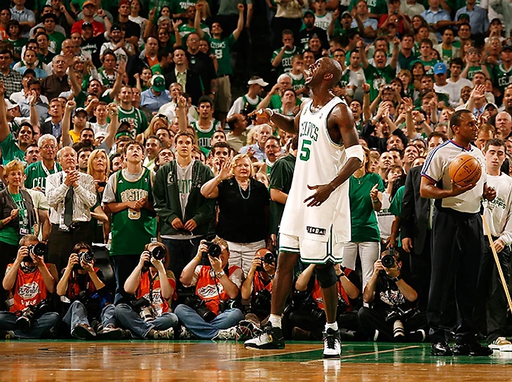Когда же, наконец, Пирс с Алленом взялись поддержать тылы Кевина, у него появилась возможность заниматься любимым делом (защищать «краску», принимать верные решения, оттеснять оппонентов от щита, вытаскивать центровых соперника из-под кольца с помощью своего точного броска с 18 футов, набирать 20 очков и 12 подборов каждый вечер, и заряжать всех своей неповторимой страстью) без необходимости брать на себя ответственность за совершение решающих бросков.