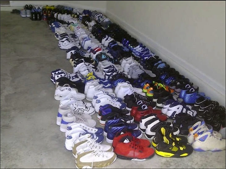 Контекст: В пребывании кроссовок дома у баскетболистов нет ничего удивительного, но некоторые персонажи умудряются перещеголять всех в количестве пар. Самая большая коллекция кроссовок в НБА – у Джо Джонсона.