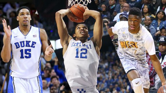 Третий вариант – Таунс, «большой» из Кентакки. Карл-Энтони обладает элитным природным атлетизмом и демонстрирует на порядок лучшую игру в обороне, нежели Окафор, при меньшей эффективности в атаке. В пересчете на игровое время своего визави из «Дьюка» Таунс поражает воображение: 12.7 очков, 10.1 подборов, 1.5 передач, 3.5 блоков при 51.6% попаданий и наличии дальнего броска (28.6%).