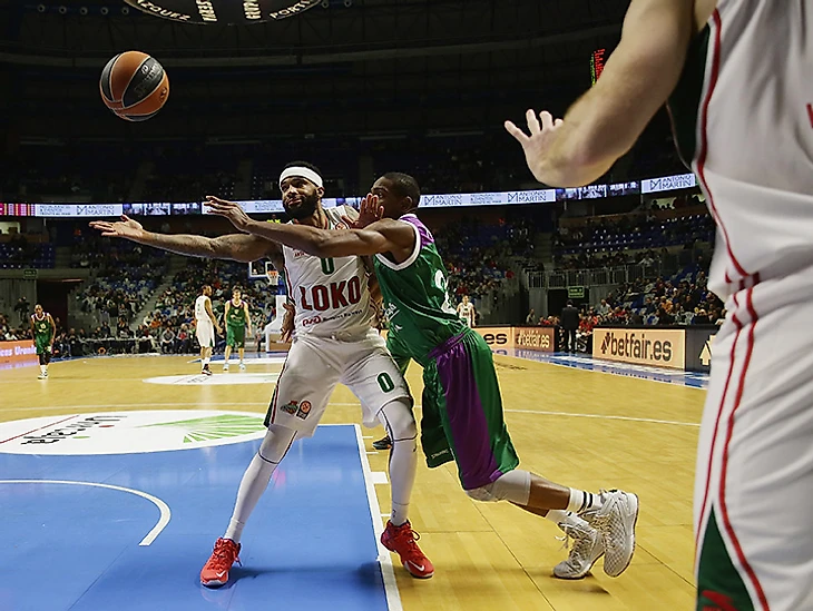 Самым главным успехом «Локомотива» в первой половине стало то, что он не позволил испанцам убежать в отрыв, хотя к этому были все предпосылки. Пока Кузьминскас не сел на лавку на долгие восемь минут, он тащил на себе атаку «Уникахи»; пока Джексон не стал действовать своей команде во вред, он забил несколько сложных бросков. Но на все выпады баскетболистов в зеленой форме то и дело находился ответ в виде трехочкового, а две последних суперсложных «трехи» под занавес первой половины не то что свели на нет усилия «Уникахи», но и оставили ту в позиции отыгрывающейся.