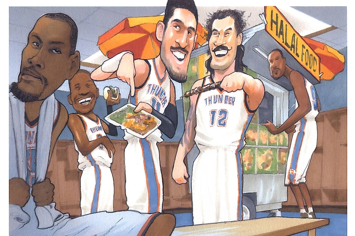 Человек, который ответственен за кулинарную революцию в Оклахоме - не Кевин Дюрэнт, Расселл Уэстбрук или любой другой игрок стартовой пятерки. Это - Энес Кантер, запасной центровой, который является мусульманином и соблюдает законы питания своей религии.