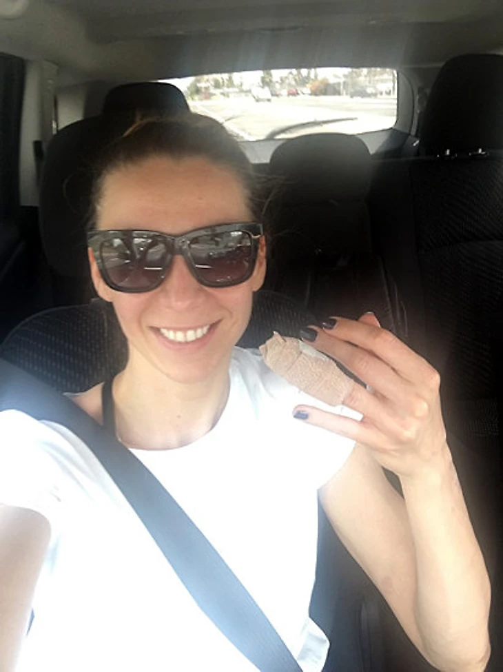 При этом на ноготь я даже не обратила особого внимания: была уверена, что врач команды остановит кровь, и я вернусь в тренировочный процесс. Однако мои планы остались лишь мечтами: кровь никак не хотела останавливаться, и наша доктор понемногу начинала терять самообладание в споре со мной. Я все еще была уверена, что ничего не сломано, и мне обязательно надо возвращаться на площадку. В итоге, мы решили съездить в больницу – чтобы просто убедиться, что я права!