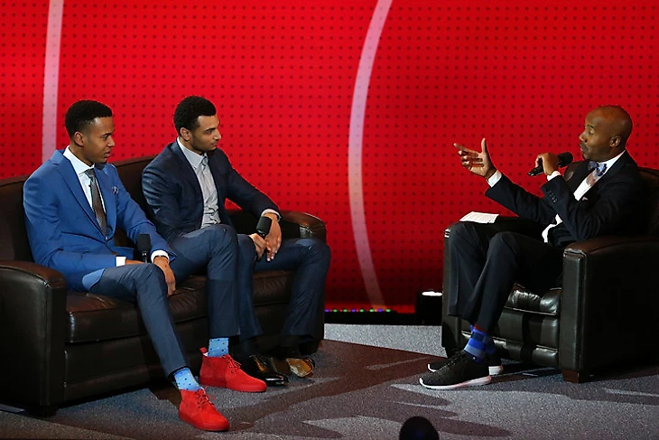 Перед сценой, откуда комиссионер НБА сегодня будет объявлять о выборах, есть зона под названием «Green Room», куда НБА персонально приглашает игроков, которых должны выбрать под наиболее высокими номерами. Обычно число приглашений варьируется от 15 до 20. Каждому игроку выделяет столик «в партере», где он сидит со своей семьей.