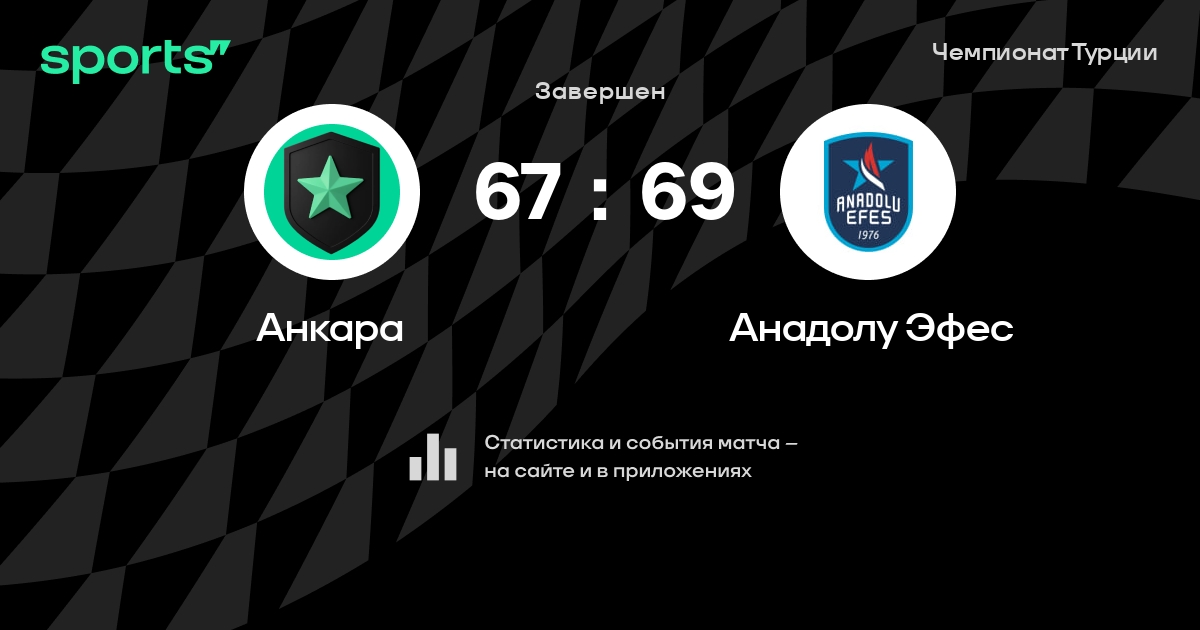 В прошедшем матче в рамках турнира Чемпионат Турции состоялась встреча команд Анкара - Анадолу Эфес в городе S???t?z? ?ankaya (Ankara) на стадионе TOBB Spor Salonu