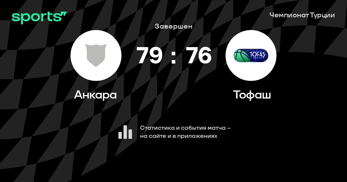 В прошедшем матче в рамках турнира Чемпионат Турции состоялась встреча команд Анкара - Тофаш в городе S???t?z? ?ankaya (Ankara) на стадионе TOBB Spor Salonu