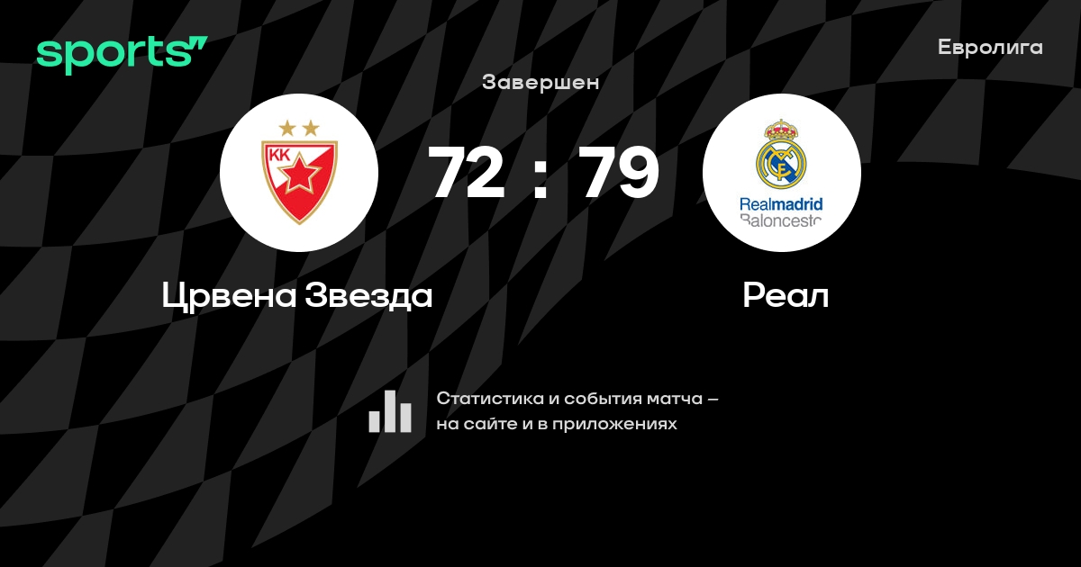 В прошедшем матче в рамках турнира Евролига (Топ-16. 1 тур) состоялась встреча команд Црвена Звезда - Реал в городе Белград (Сербия) на стадионе Белград Арена (вместимость - 22386)