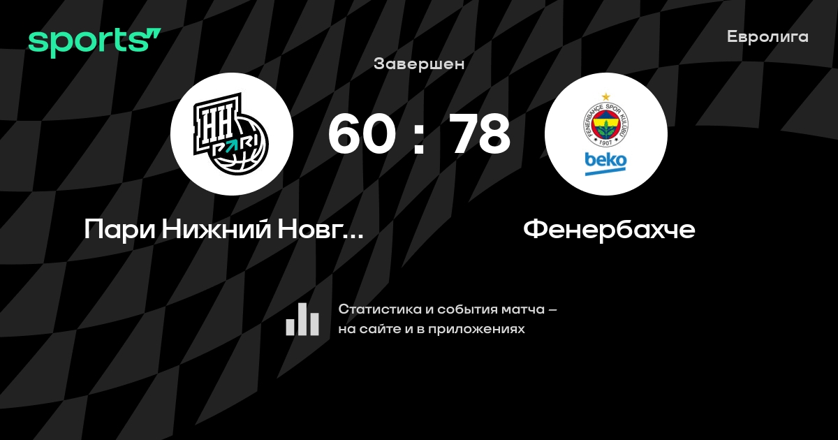 В прошедшем матче в рамках турнира Евролига (Топ-16. 2 тур) состоялась встреча команд Пари Нижний Новгород - Фенербахче в городе Нижний Новгород (Россия) на стадионе КРК Нагорный (вместимость - 5600)