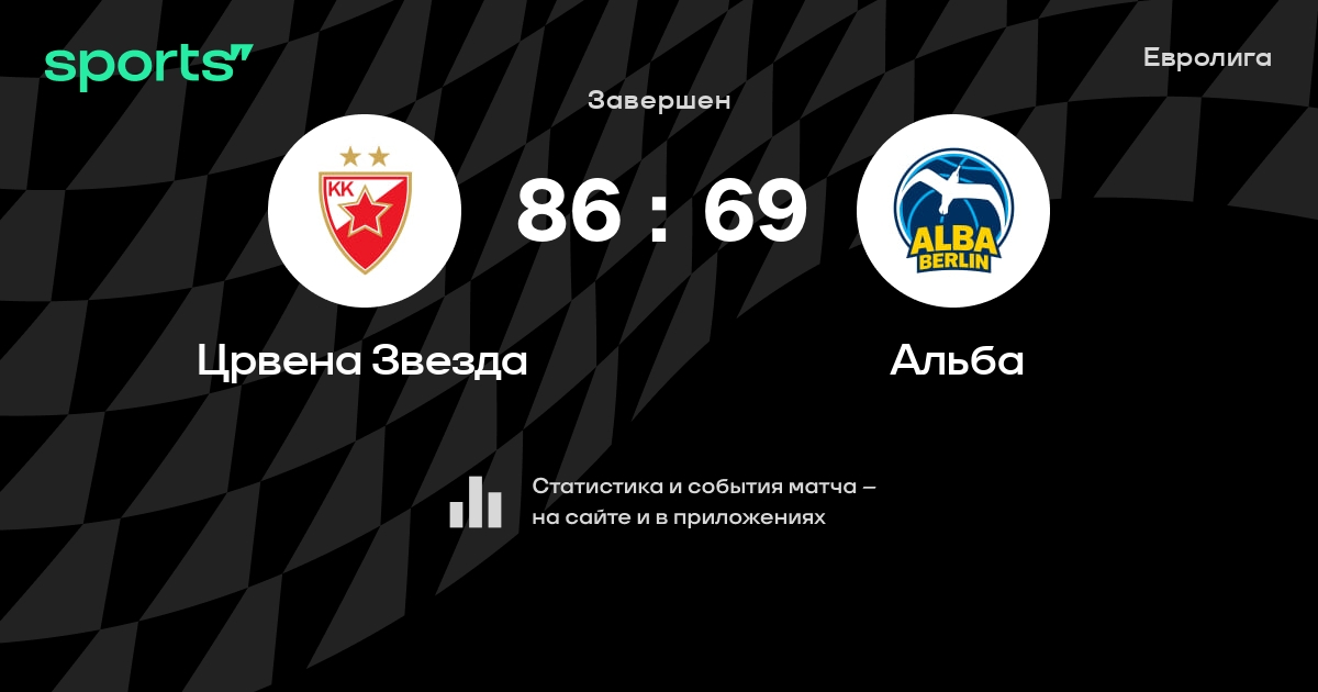 В прошедшем матче в рамках турнира Евролига (Топ-16. 5 тур) состоялась встреча команд Црвена Звезда - Альба в городе Белград (Сербия) на стадионе Белград Арена (вместимость - 22386)
