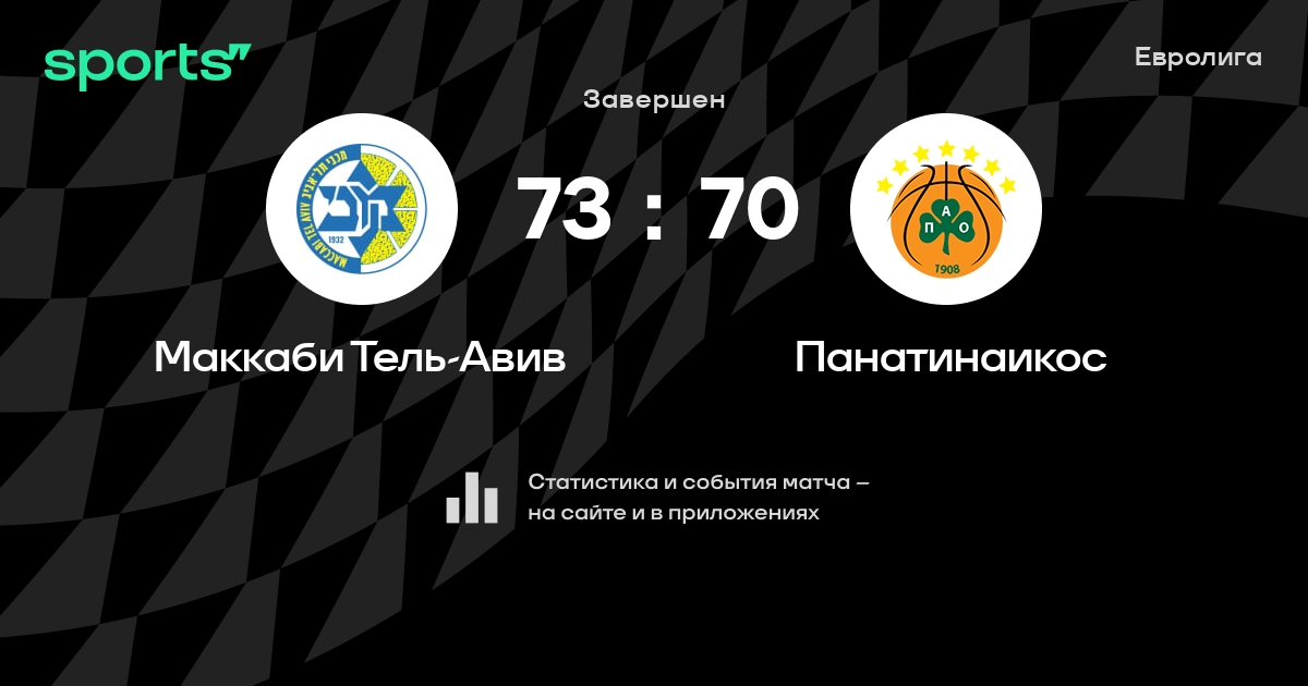 В прошедшем матче в рамках турнира Евролига (Топ-16. 8 тур) состоялась встреча команд Маккаби Тель-Авив - Панатинаикос в городе Тель-Авив (Израиль) на стадионе Менора-Мивтахим Арена (вместимость - 11700)