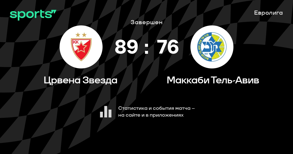 В прошедшем матче в рамках турнира Евролига (Топ-16. 9 тур) состоялась встреча команд Црвена Звезда - Маккаби Тель-Авив в городе Белград (Сербия) на стадионе Белград Арена (вместимость - 22386)