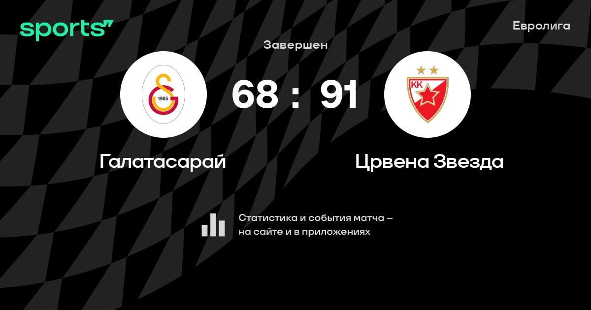 В прошедшем матче в рамках турнира Евролига (Топ-16. 10 тур) состоялась встреча команд Галатасарай - Црвена Звезда в городе Стамбул (Турция) на стадионе Абди Ипекчи Арена (вместимость - 12500)