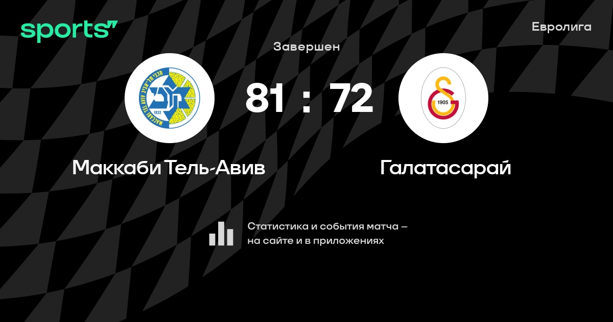 В прошедшем матче в рамках турнира Евролига (Топ-16. 13 тур) состоялась встреча команд Маккаби Тель-Авив - Галатасарай в городе Тель-Авив (Израиль) на стадионе Менора-Мивтахим Арена (вместимость - 11700)