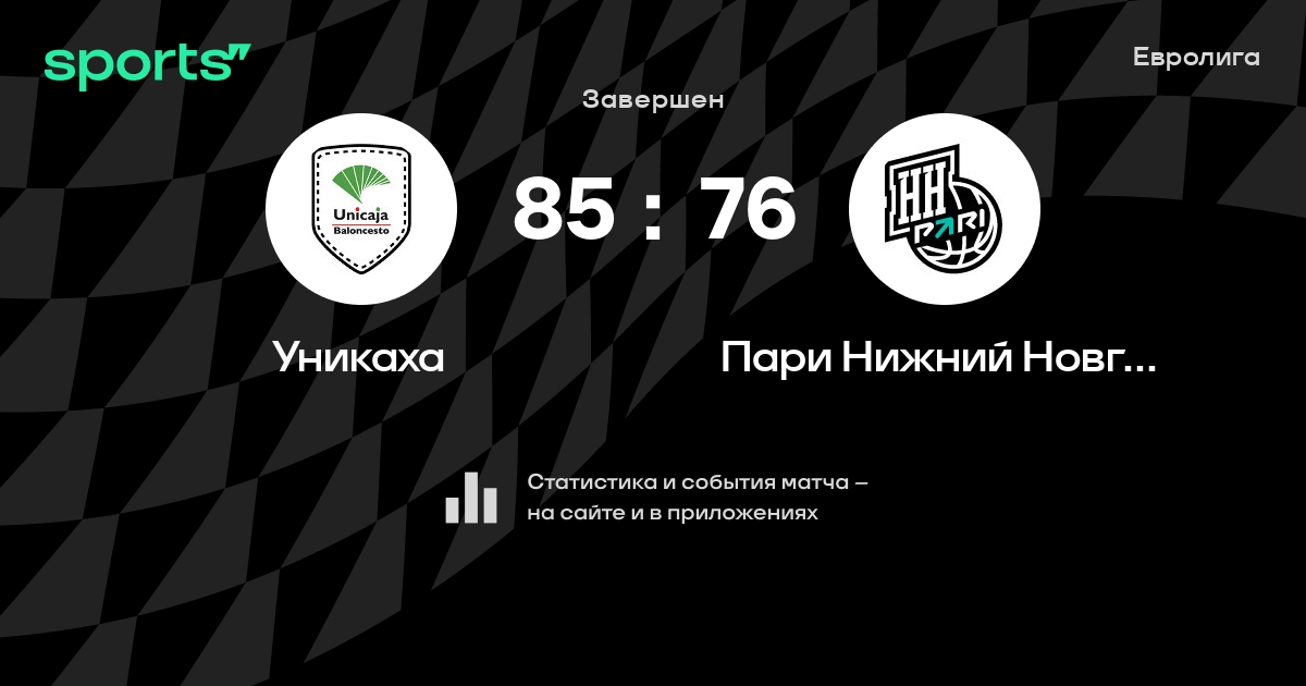 В прошедшем матче в рамках турнира Евролига (Топ-16. 6 тур) состоялась встреча команд Уникаха - Пари Нижний Новгород в городе Малага (Испания) на стадионе Паласио де Депортес де Малага (вместимость - 10500)