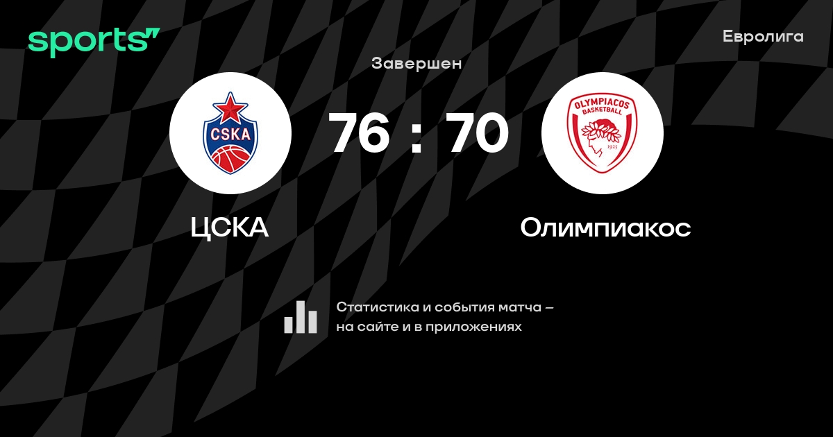 В прошедшем матче в рамках турнира Евролига (Топ-16. 13 тур) состоялась встреча команд ЦСКА - Олимпиакос в городе Москва (Россия) на стадионе УСК ЦСКА им. А.Я. Гомельского (вместимость - 4500)