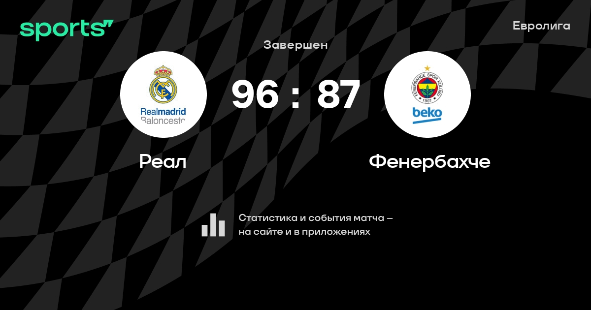 В прошедшем матче в рамках турнира Евролига (Полуфинал) состоялась встреча команд Реал - Фенербахче в городе Мадрид (Испания) на стадионе Мовистар Арена (вместимость - 15000)
