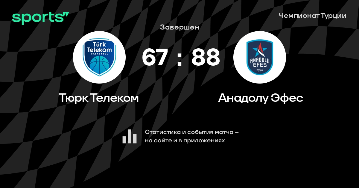 В прошедшем матче в рамках турнира Чемпионат Турции состоялась встреча команд Тюрк Телеком - Анадолу Эфес в городе Ankara на стадионе Ankara Arena