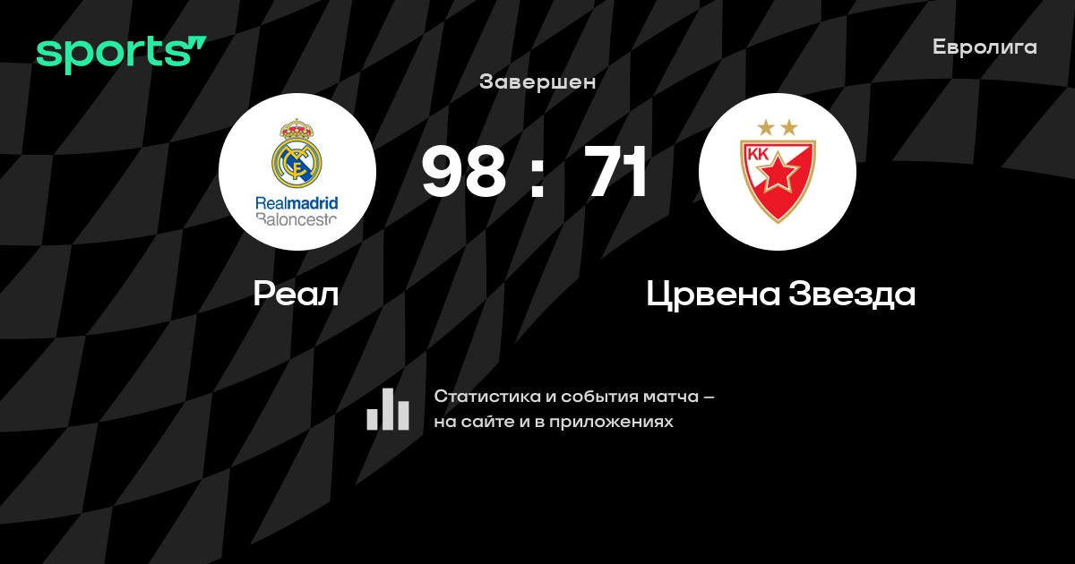 В прошедшем матче в рамках турнира Евролига (Группа A) состоялась встреча команд Реал - Црвена Звезда в городе Мадрид (Испания) на стадионе Мовистар Арена (вместимость - 15000)