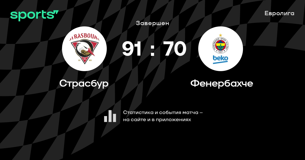 В прошедшем матче в рамках турнира Евролига (Группа A) состоялась встреча команд Страсбур - Фенербахче в городе Страсбург (Франция) на стадионе Реню Спорт (вместимость - 6200)