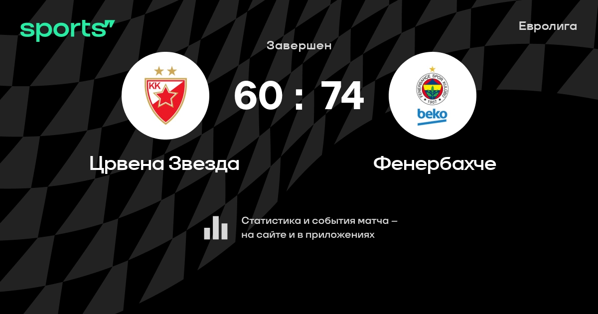 В прошедшем матче в рамках турнира Евролига (Группа A) состоялась встреча команд Црвена Звезда - Фенербахче в городе Белград (Сербия) на стадионе Белград Арена (вместимость - 22386)